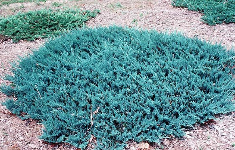Juniperus horizontalis 'Blue chip' - Kék terülő boróka egy feltűnően szép, ezüstös kék színű, puha lombú, tűlevelű, tollszerű, hajtásszerkezetű, 20-30 cm magas, szőnyegszerűen beteríti a talajt. Lassan növekszik. Hajtásai, ágai a talajon hevernek és alig 30 cm magasra nőnek. Napos helyet kedvel, intenzív kék színe érdekében feltétlenül mészmentes talajba ültessük. Sziklakertbe, és ideális rézsűk beborítására is. Szárazságtűrő fajta, nem fagyérzékeny.