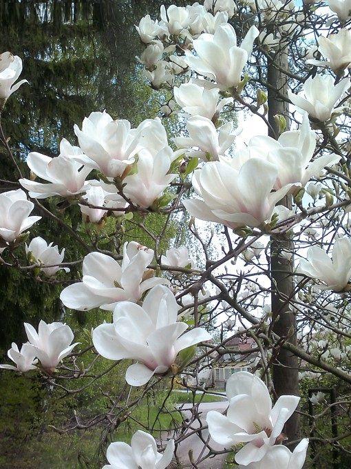 A Magnolia soulangeana - Fehér magnólia, liliomfa 5-6 m magas erőteljes növekedésű lombhullató cserje vagy kisebb fa.