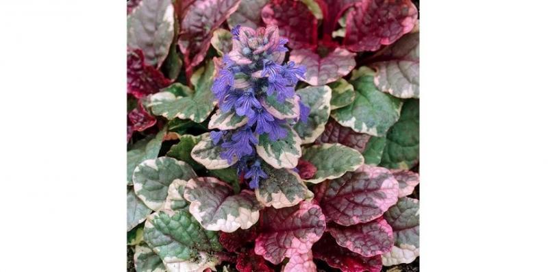 Az Ajuga reptans 'Burgundy Glow' - Indás ínfű tarka, 15-30 centiméter magas, szétterülő, évelő növény. Az indái legyökeresednek, így nagyszerű talajtakaró.