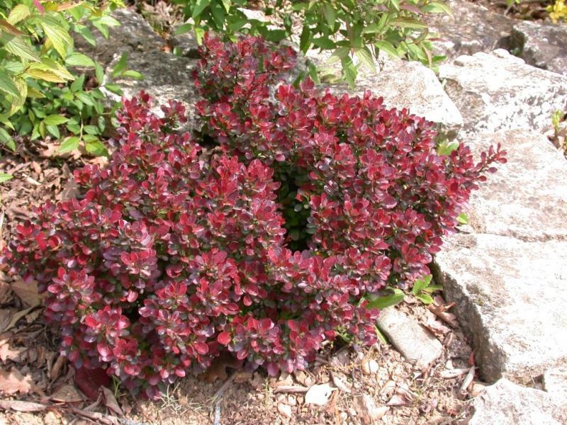 40-60 cm magas, gömb alakú, tövises vesszejű, lombhullató díszcserje. Legfőbb díszértékét vörös színű levelei adják. Sárga virágait tavasszal hozza. Piros színű termése sokáig a bokron marad. Napos kertrészre ültessük. Jól tűri a szárazságot.