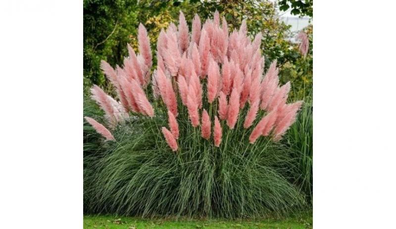 A Cortaderia selloana 'Rosea' - rózsaszín ezüstös pampafű egy hatalmas termetű díszfű.Zöld színű szálas levelei 1-2 méter hosszúak, metszően éles szélűek, ívesen kihajlók. Nyár végétől kibomlanak rózsaszín virágai, melyek még télen is díszítenek. Napos, meleg fekvést, laza talajt igényel.