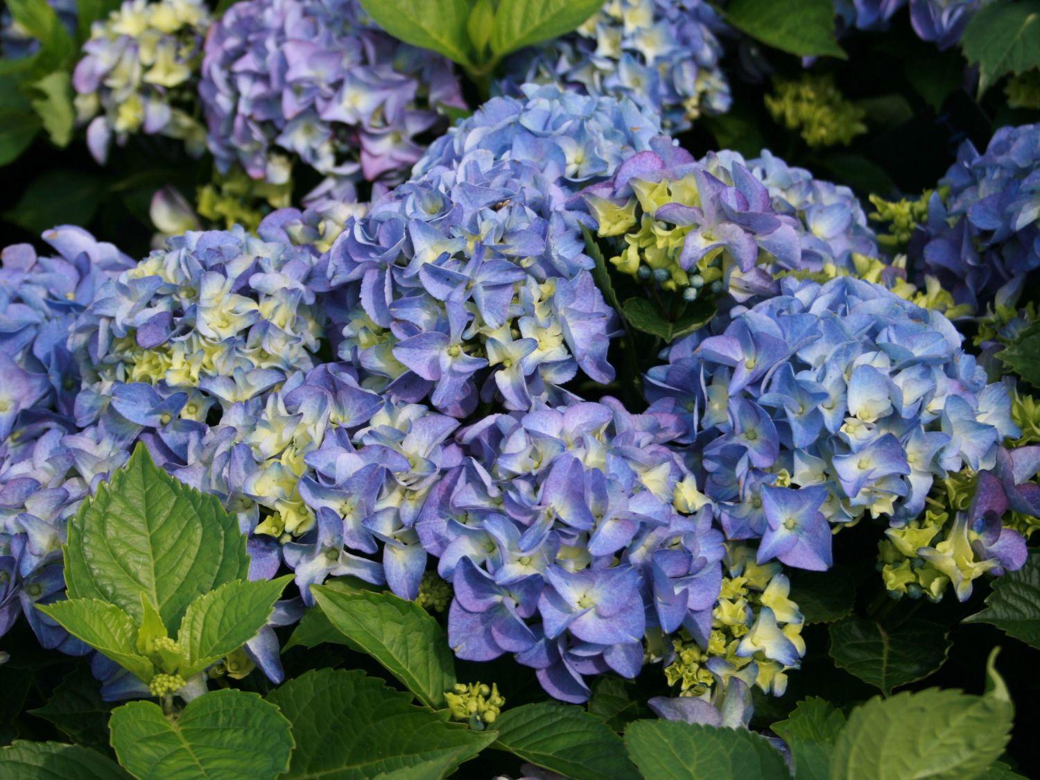 A Hydrangea macrophylla ’Early Blue' - Kerti hortenzia egy közepes méretű, kompakt növekedésű fajta, kb 1 m magasra és 1 m szélesre növő dekoratív, nagylevelű díszcserje. Nagy, kékes, rózsaszínes virágait a nyár folyamán hozza, májustól októberig. Levelei zöldek, nagyméretűek, kissé érdes felületűek.