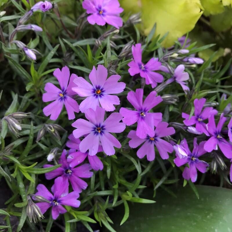 A Phlox 'Purple beauty' - Árlevelű lángvirág 10-15 cm magas terjedő tövű évelő. Április májusban hozza bíborszínű virágait. Az ötszirmú virágok torkában apró, sötétebb árnyalatú foltok áthatók. Lombozata örökzöld.