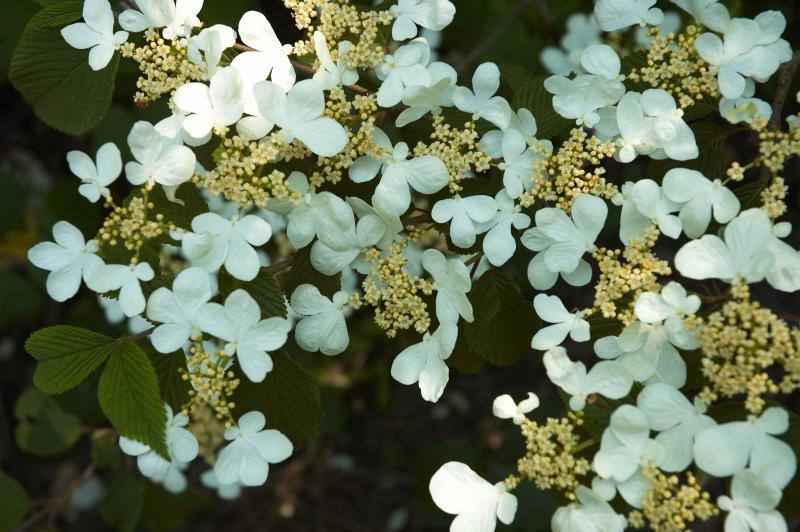 A Viburnum plicatum 'Mariesii'- Redős levelű bangita 1,5-2 m magas, vízszintes ágrendszerű, lombhullató cserje. Fehér virágait lapos tányérokban nyár elején hozza. Levelei ősszel bordóra színeződnek.